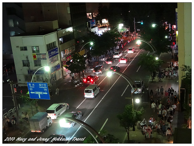 從五樓房間看下去,一小時之後,街上散場的人潮還不少呢!