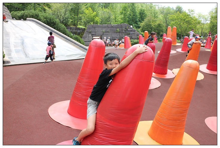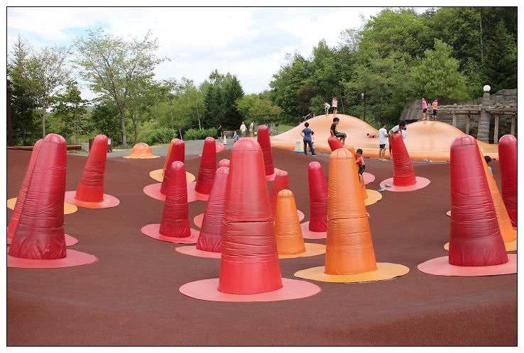 ▲ 水源的上游,這一區有這樣一根一根突起的軟墊,有點像拳擊的沙包,名稱是:うねりの大地