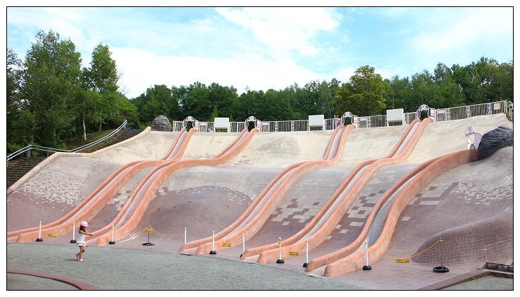 ▲ 官網稱這為熔岩滑梯,這五組滑道整體看起來還真像岩漿流下山的感覺。
