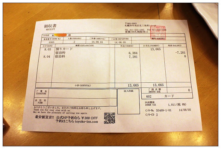 離開之前順便以媽咪的名字又辦了一張東橫INN的會員卡,方便日後可以訂兩間房。