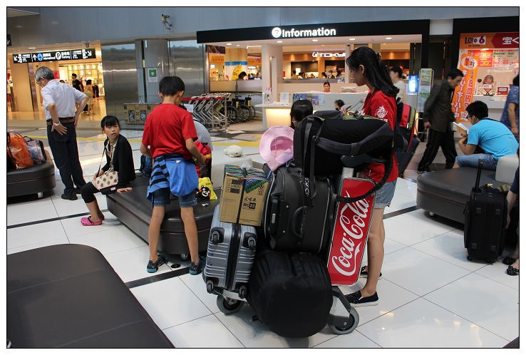 ▲還沒托運行李之前,一堆超重的行李隨身,那兒也不能去逛,先去中央廣場休息等候。