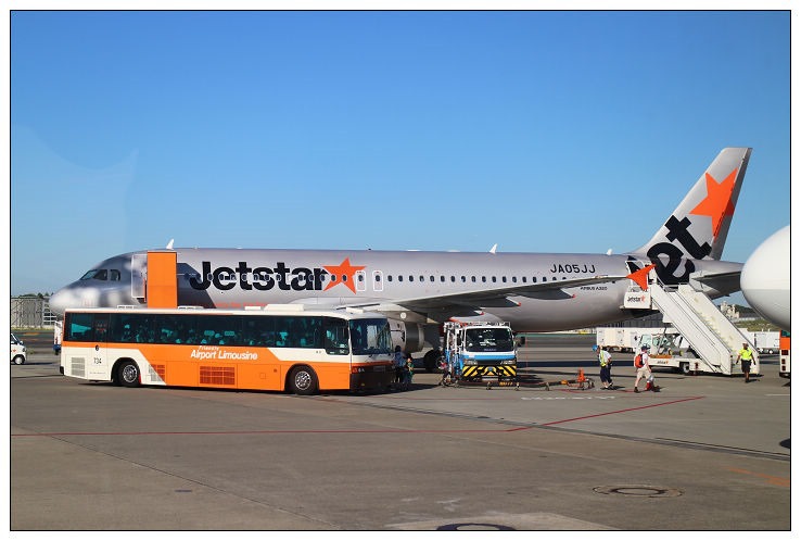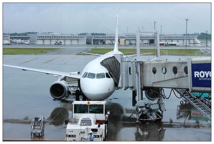 ▲ 北海道下雨,東京則是艷陽高照。成田機場進出一律使用接駁車,可以近距離對飛機攝影。