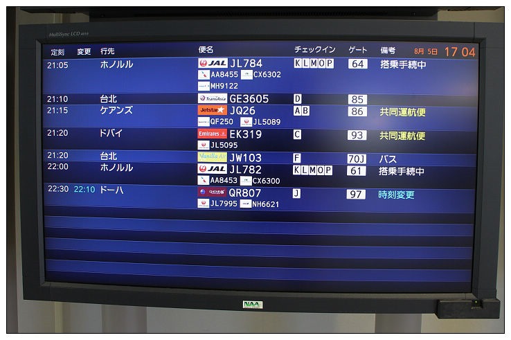 ▲ 進入航廈第一件事先確認一下報到櫃台的所在地,並確認報到與登機時間。