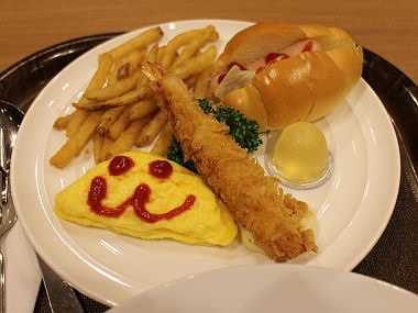廉航的機上連水都要另外付費,還是填飽肚子再飛吧!兒童餐量不多,菜色卻不少。