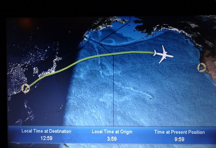 ▲ 總算飛了四分之三,台灣時間已經是凌晨四點。過了換日線,窗外天色大亮。