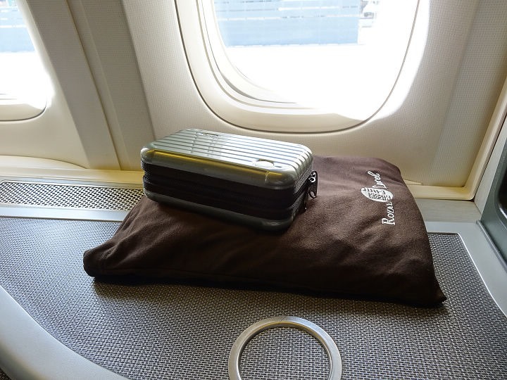 過夜包可以帶走,睡衣呢?詢問空服員之後,確認也是可以帶回家的。