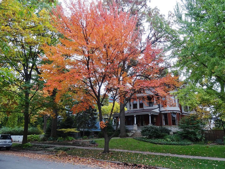 欣賞著照片裡的美式建築~ 與楓紅的畫面~ 很有進入電影裡面的感覺喔~