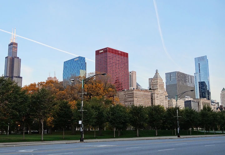 ▲ 左邊兩根尖尖的高樓就是芝加哥第一高樓西爾斯塔,現名Willis Tower。