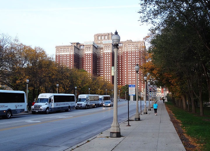 ▲ 這幾天的住處Hilton Chicago,前面這位女士跑者跟我同時出發,同時折返。
