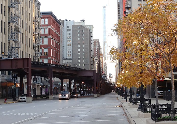 ▲ 這幅景象在芝加哥的電影裡常常見到,高架的電車,下面有汽車行駛。