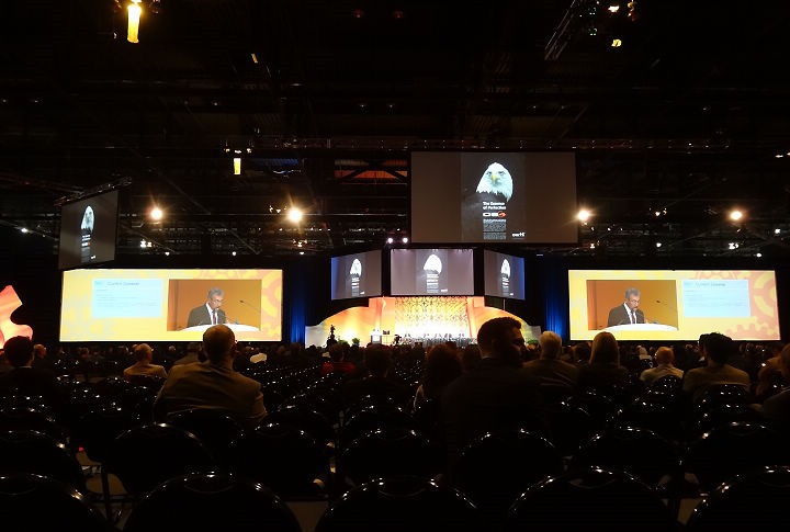 ▲ 這場地更誇張,可以容納2500人同時聽演講,螢幕也做得相當大。