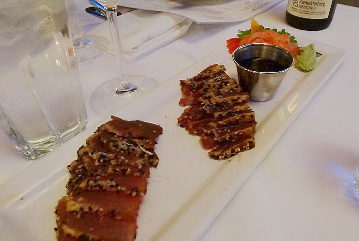炙燒過的鮪魚生魚片,有附山葵和醬油喔!