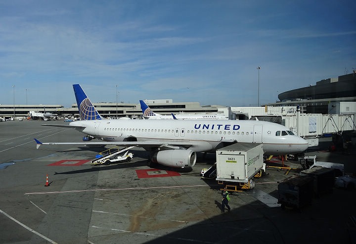 前往國際線登機門的空中走廊上,剛好清楚地看到我們剛剛搭乘的班機,後會有期,聯合航空。