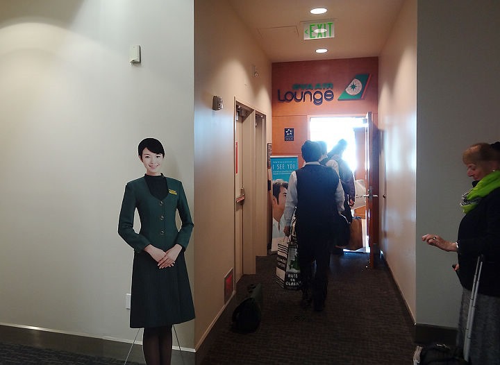 這航廈總算有長榮的貴賓室了。一夥人準備要進去休息,櫃台服務人員要幫我們重新印登機證,