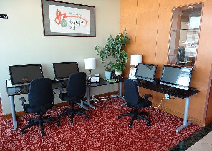 旁邊有四台電腦可供使用,以前應該是很熱門,現在多半坐在自己的位置上滑手機或平板。