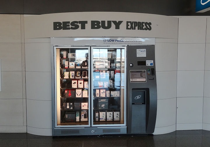 3C產品的自動販賣機,可以刷卡,產品包括耳機、記憶卡、手機與護套等等常用的配件。