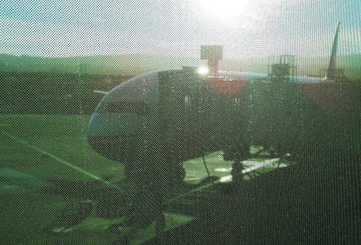 隔著紗窗看班機,應該是上次搭乘的同一架飛機。