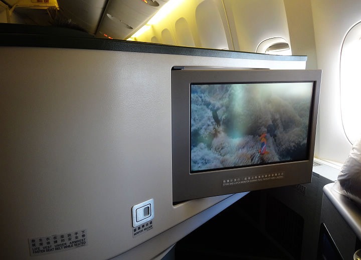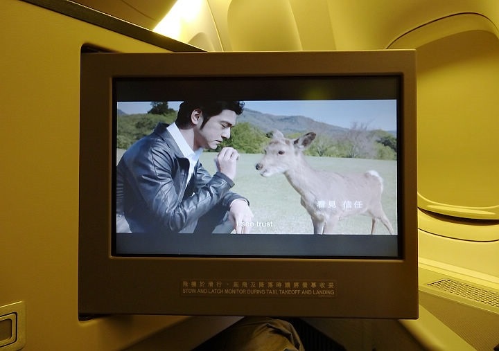 起飛前就可以開始看影片,不過起降時要螢幕要收起來。( 還是可以斜斜地看 )