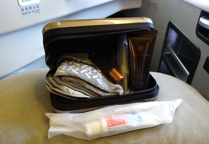 眼罩、保暖襪、清潔乳液、牙刷牙膏等物品,很方便。