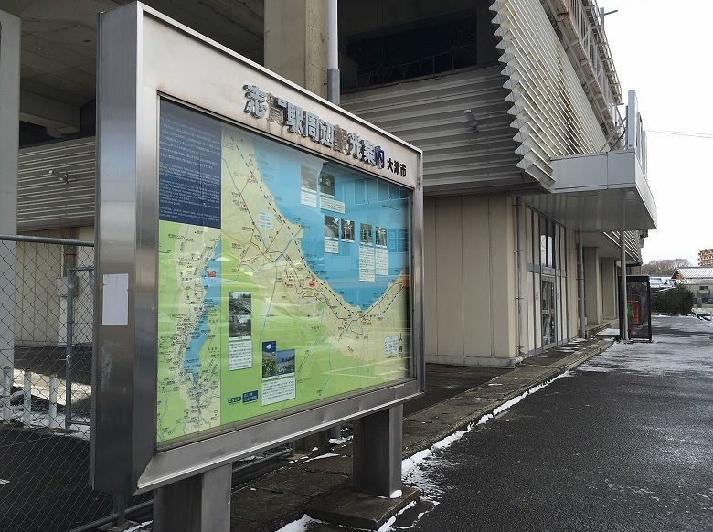 到了志賀站,出口只有一個。看起來是純樸鄉間的小站,觀光案內看板的字都斑駁了。