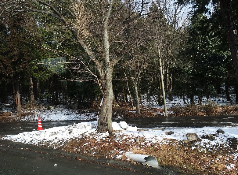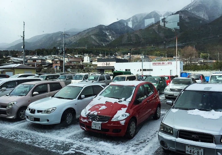 到了山麓的地方下車,傍晚搭車地點在同一地方。奇怪?這一點雪,玩得起來嗎?( 真蠢的問題 )