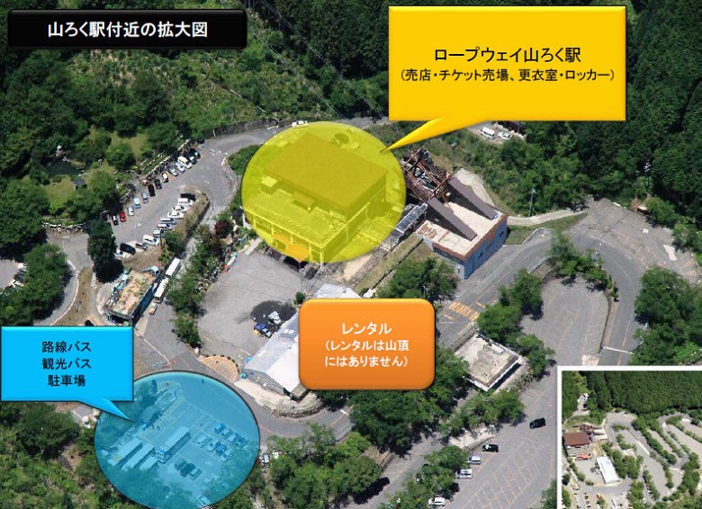 ( 節錄自官網 ) 山麓纜車站的鳥瞰圖,左下藍色區塊是巴士停車場。