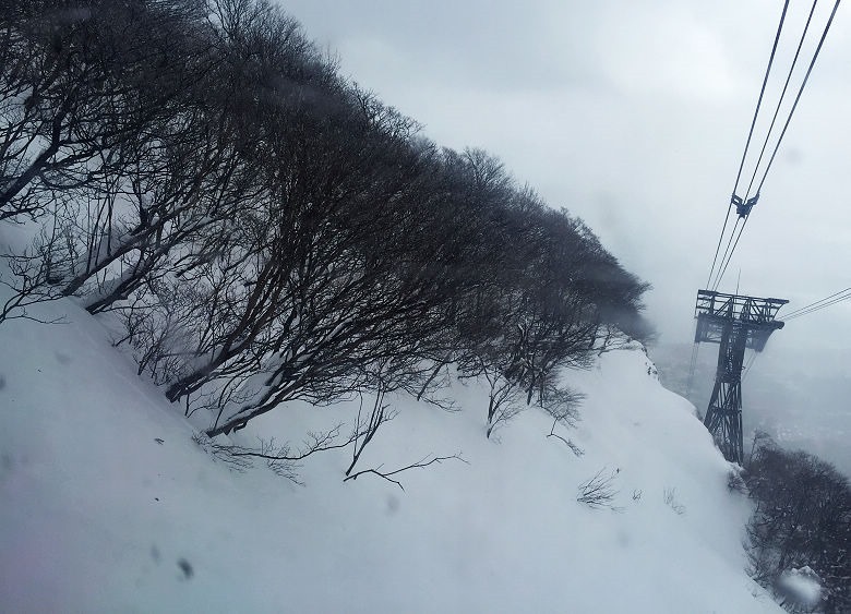 積雪已經厚到有點超乎想像,雪氣造成的濃霧,遮蔽山下的景色,完全來到雪國的境界。