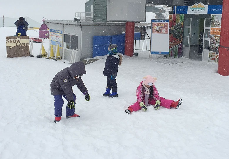 現場也有不少日本家庭帶著小小孩來玩雪。做好保暖準備,其他就任孩子自己玩。