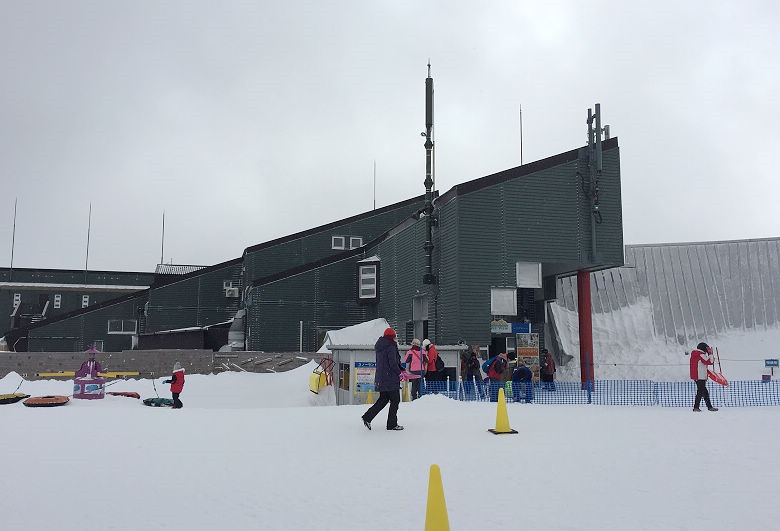 黃色區塊是纜車站、更衣室、儲物櫃、賣店,橘色建築則是雪具出租店。