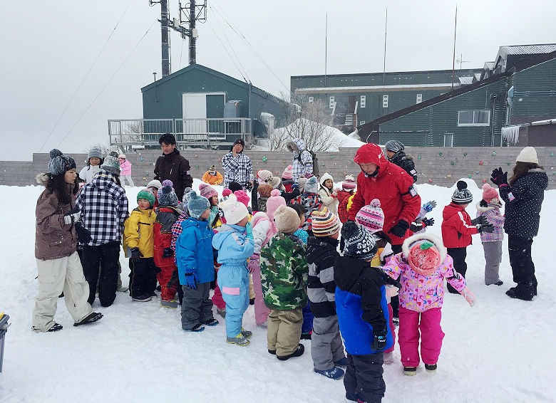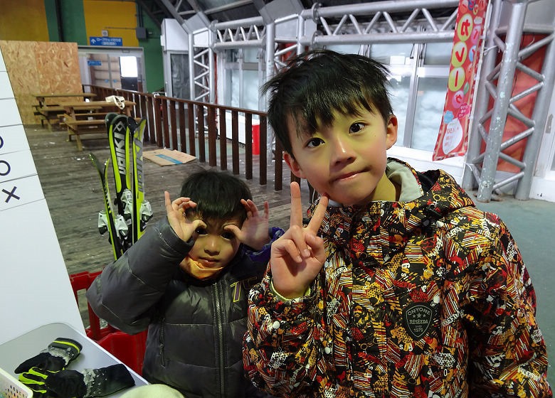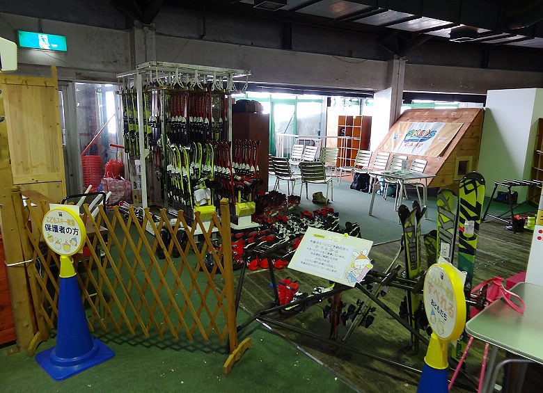 休息區裡有兒童的滑雪營可接受報名,今天是上午一場下午一場。