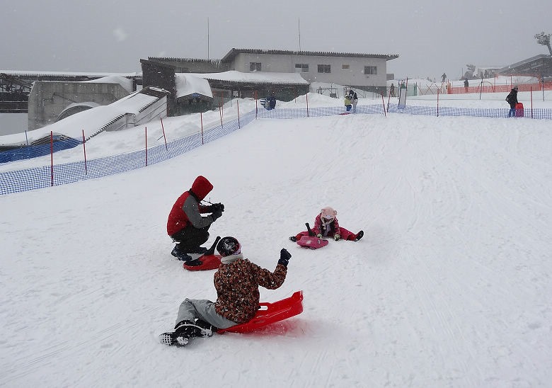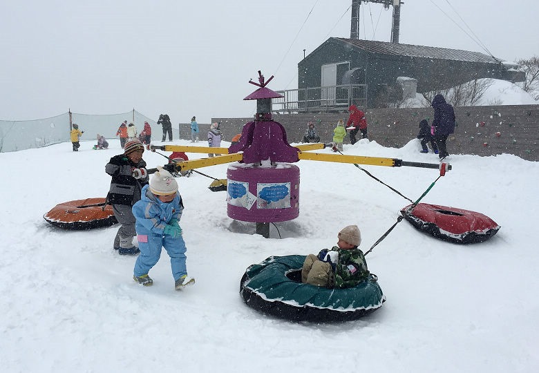 場地裡有準備雪橇與雪盆讓孩子玩,數量很多不用擔心搶光光。