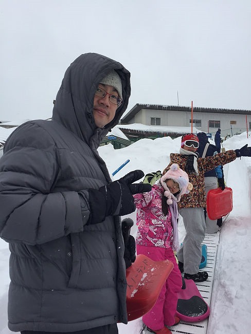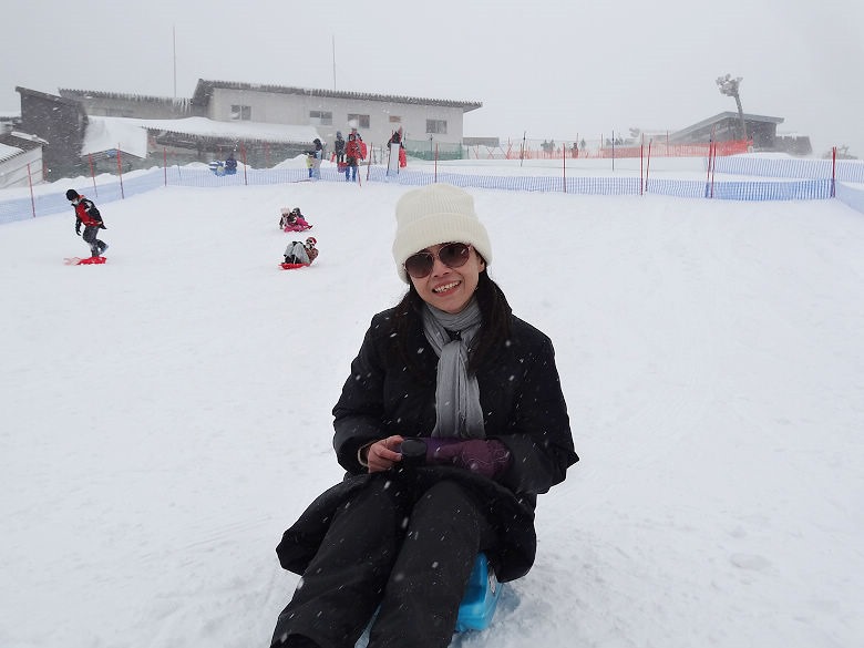 北海道跟團那次,不僅時間有限,雪盆溜下去要自己拉上來,成人大約三趟就受不了了。