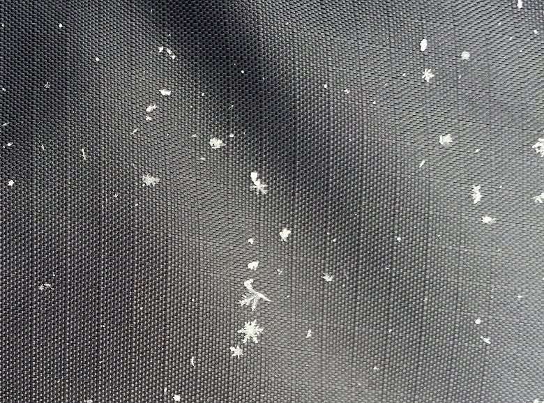 衣服上的殘雪,可以用肉眼就清楚地看到雪花的結晶。對小孩來說親眼見識一下也是有教育意義。