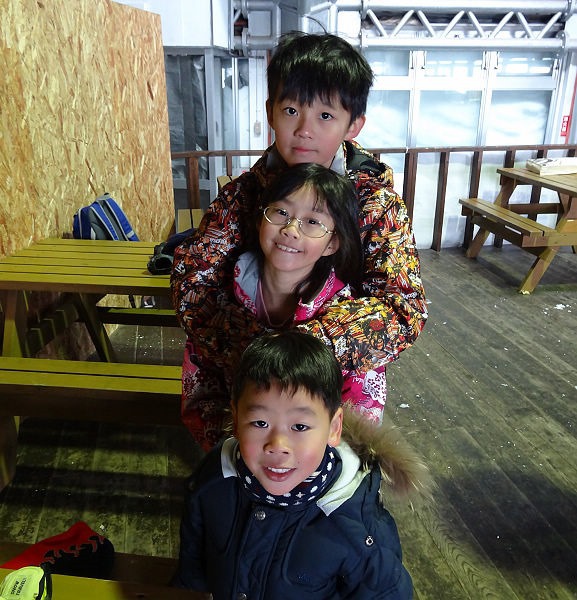 幾分鐘之內,孩子們光是玩雪已經樂不可支,那兒都不想去。要不是大人的催促,才跟著購票進場。