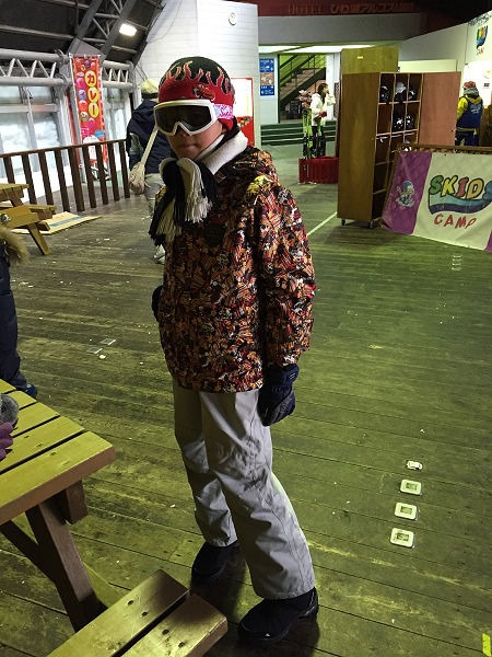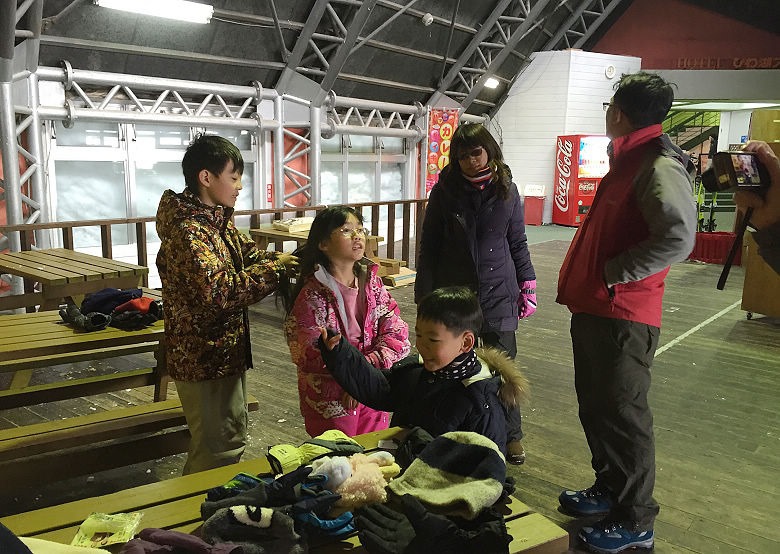 沒多久,休息夠了,再度穿戴起禦寒裝備,準備再一次衝向雪地玩耍,是不是一身帥氣呢?