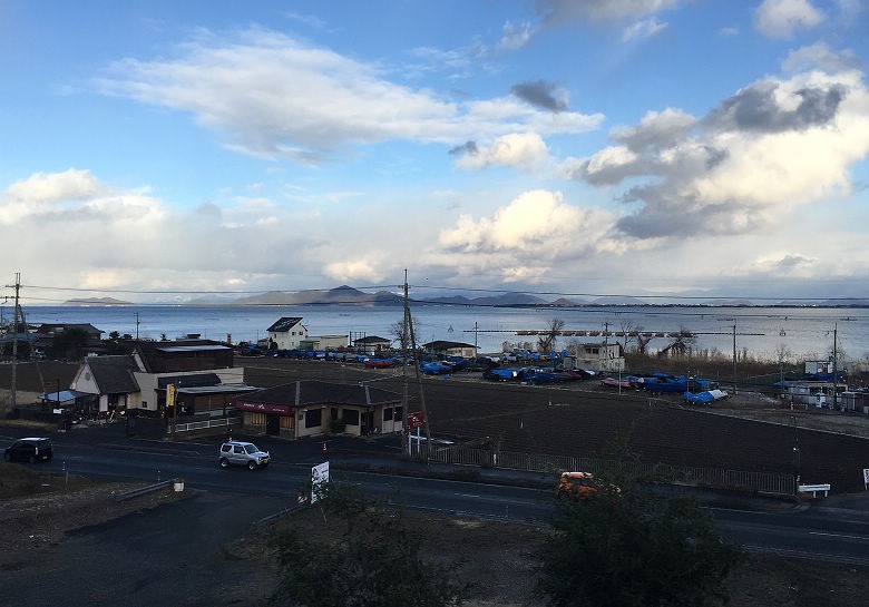 鳥瞰琵琶湖景,不愧是日本第一大湖,湖面相當壯闊。晴時多雲的天氣讓光線的變化非常快速。
