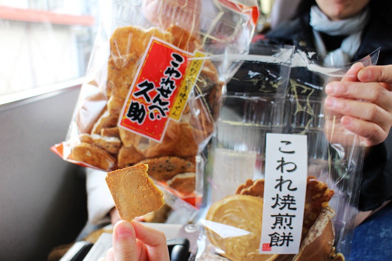 剛剛在中谷屋買的煎餅,車上當零嘴享用,又脆又香甜,早知道多買幾包,哈哈。