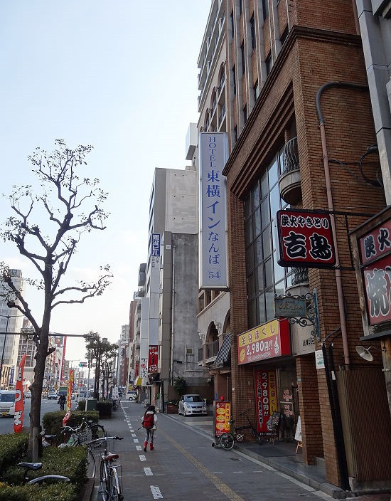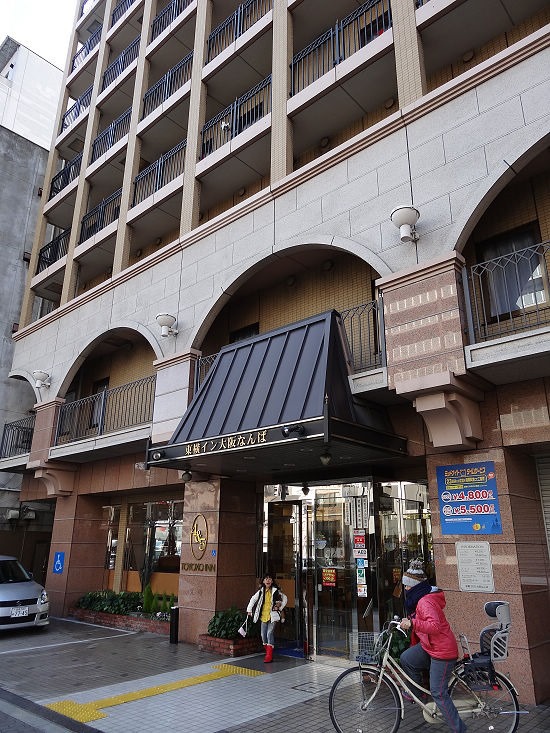直直走,走到交叉路口,往左前方看,可以看到我們這兩天下禢的旅館--大阪難波東橫INN。
