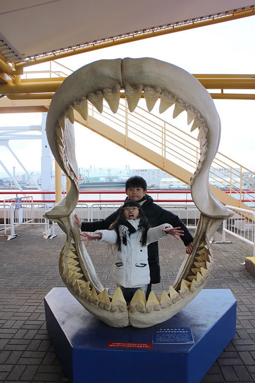 不管是真是假,一看到大鯊魚的牙齒,就知道是來參觀水族館。小樽水族館也有一組,體積差不多。
