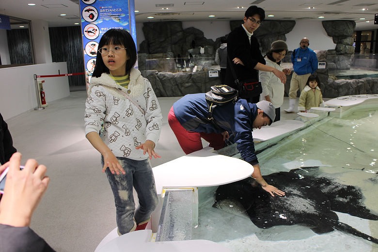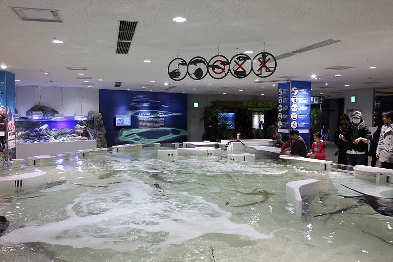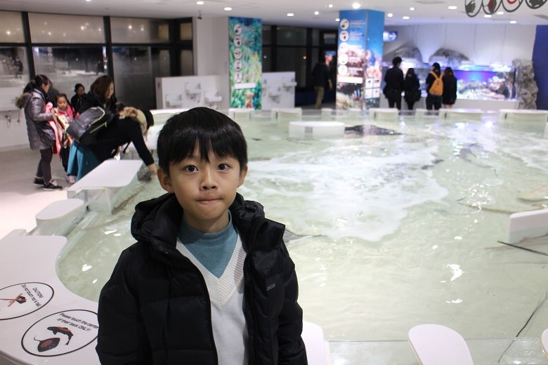 最後是觸摸區,一大片水池可讓孩子們直接觸摸小型鯊魚、魟魚,也有工作人員在場,算是安全。
