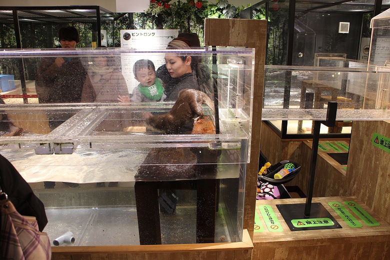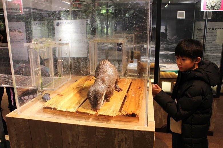 以透明管道,設計小水獺的生活空間,讓小朋友可以近距離觀察動物們,實在是很貼心的設計。
