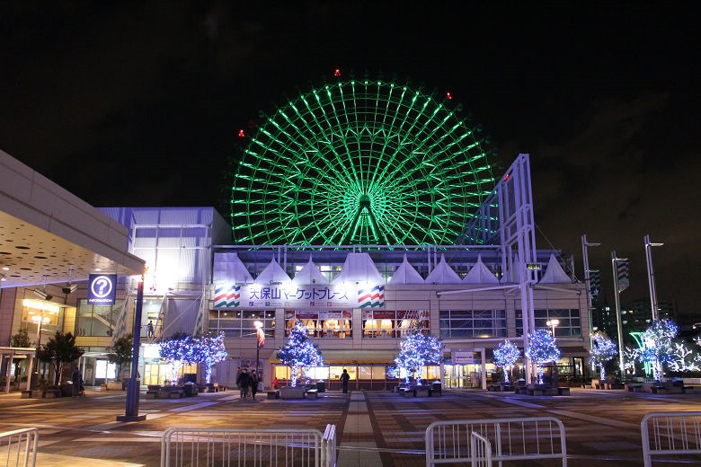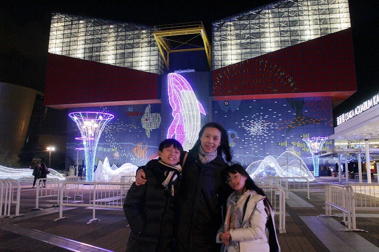 離開海遊館,天色已暗。四周絢麗的霓虹燈與摩天輪的燈光,在夜裡特別耀眼炫目。