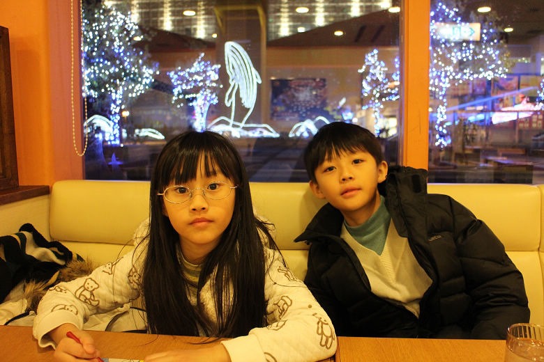 等餐的過程,孩子們一點都不無聊。有沒有注意到後面的窗外呢?
