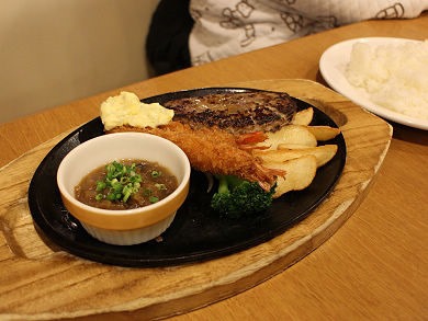 漢堡排餐 + 小披薩 + 湯品,也才990円!當時怎麼沒看到這選項呢?