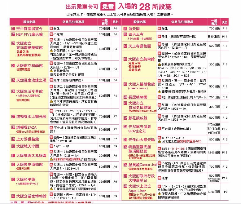 二. 2015的周遊卡,持卡可免費參觀28個景點,不需再另外付費。( 28個地方都在一日券有效範圍內 )
