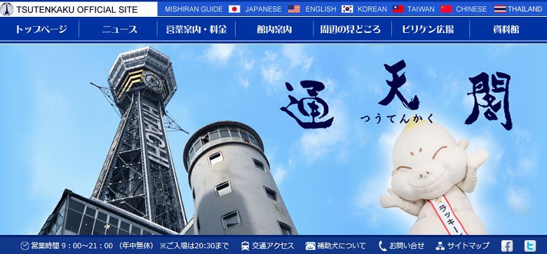 ( 通天閣官方網站 http://www.tsutenkaku.co.jp/ ) 營業時間 AM09:00-PM21:00