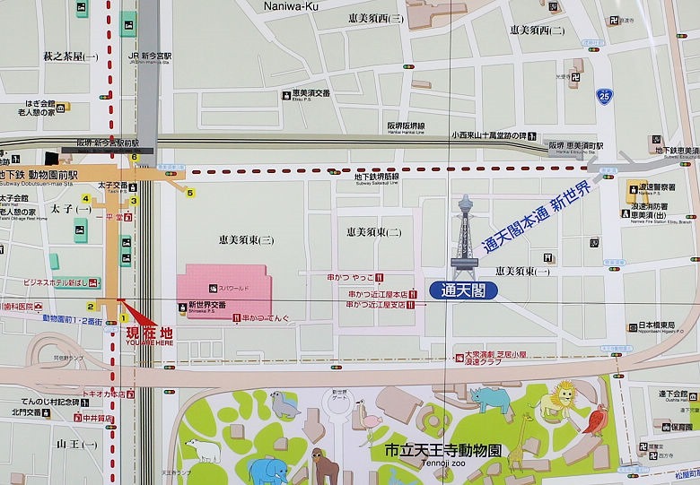 其實有三個地鐵站可以到通天閣,動物園前、天王寺、惠美須站都可以,走一小段路可達。