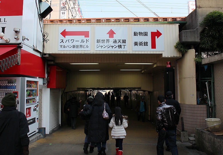 問了樓下的警衛先生,最近的電車站要怎麼走?沿著通天閣本通,直直走到入口這邊就是了。