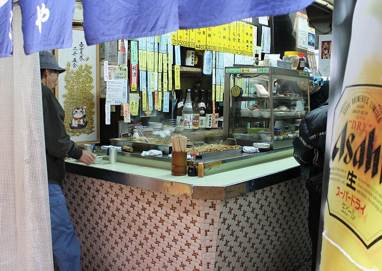 感覺很像國內傳統市場裡面的餐飲店,一大早就開門營業了。類似關東煮的立食店 ( 這裡是關西呢! )