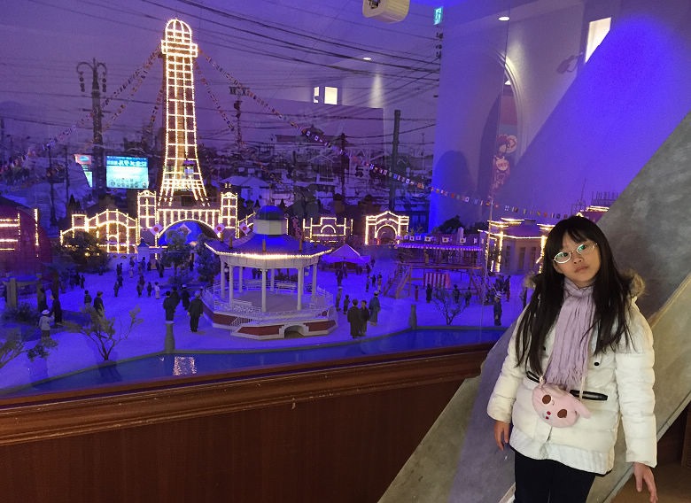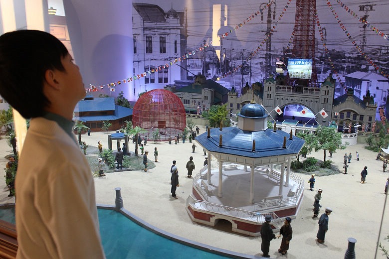 以模型還原一百年前,通天閣完工時,周邊商店與人潮繁華的景象。
